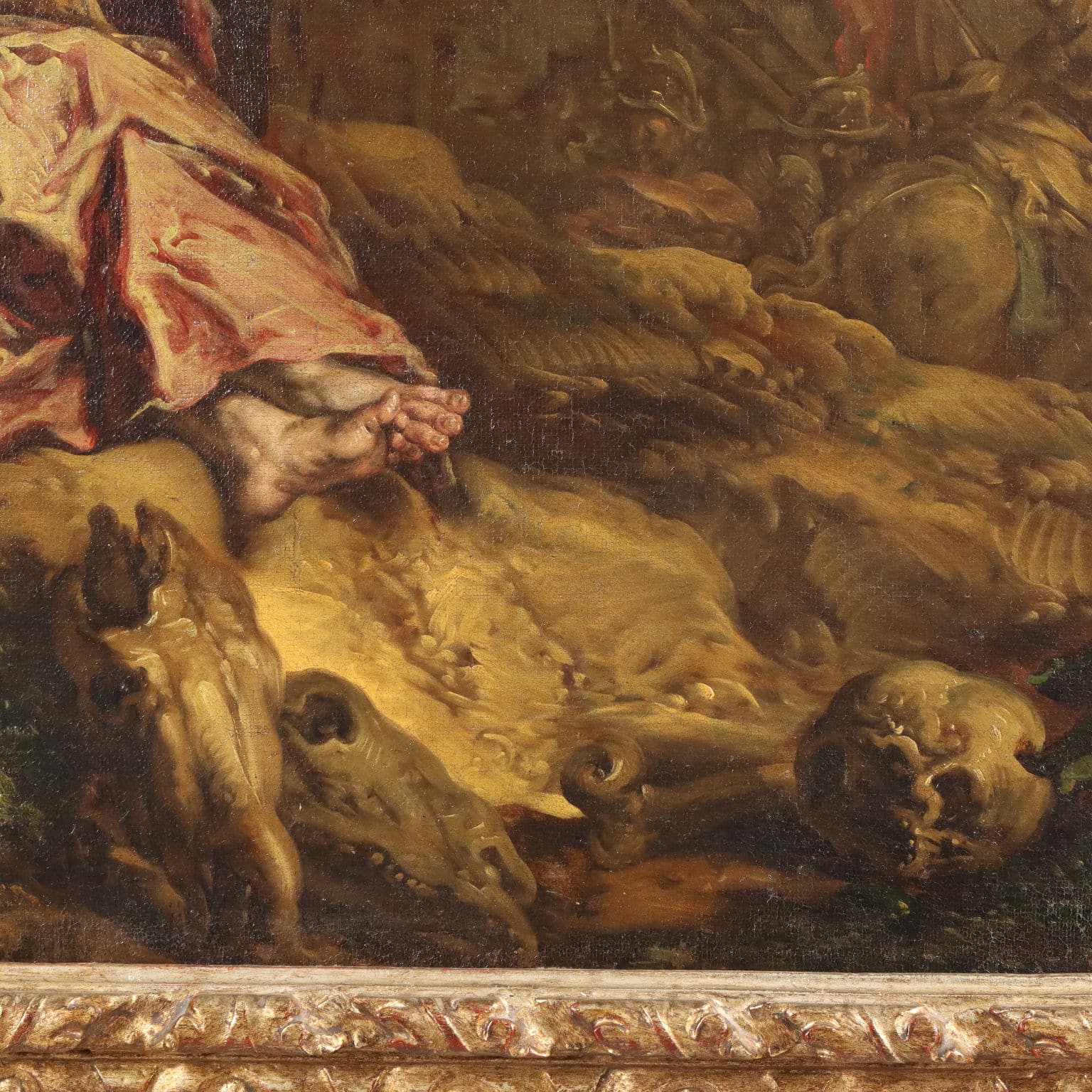 The composition, marked by strong dramatic intensity, employs pronounced contrasts between light and shadow, energetic brushstrokes, and a powerful emotional rendering.