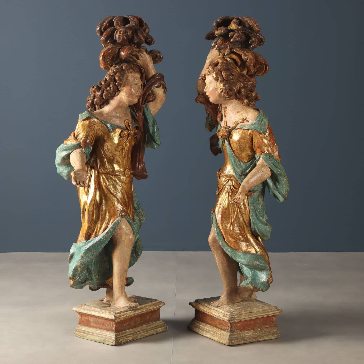- Pair of Figures with Cornucopia Carved, painted, and gilded limewood
